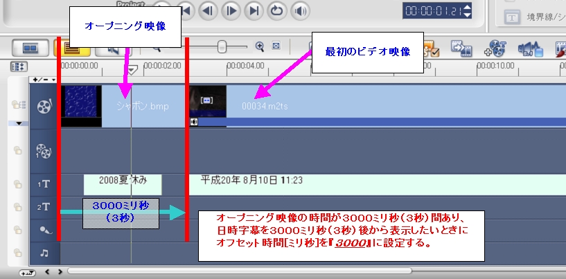 2.日時字幕の開始時間(オフセット時間)を指定できるようにしました。